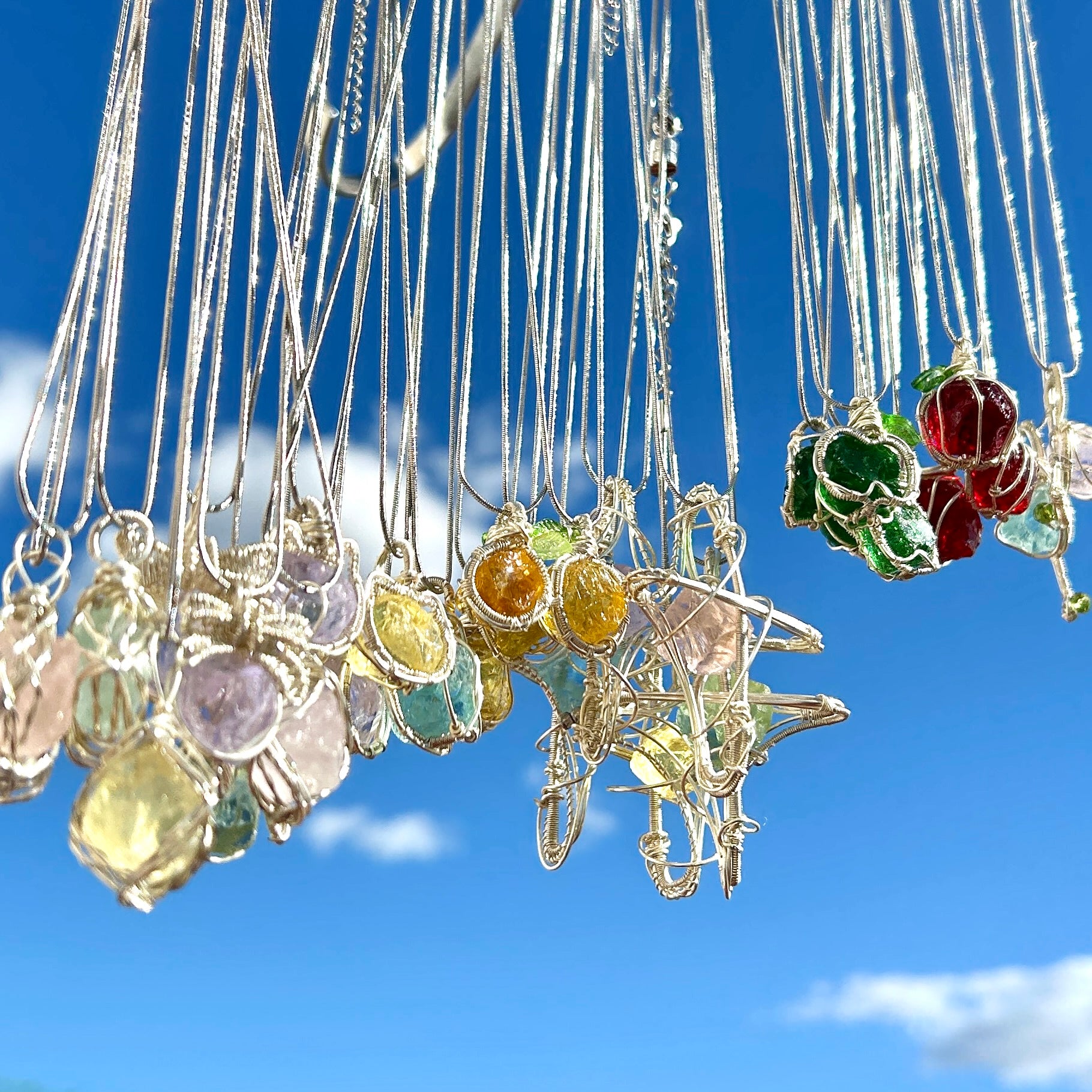 Collar artesanal colgante lazos cristal multicolor brillante joyería