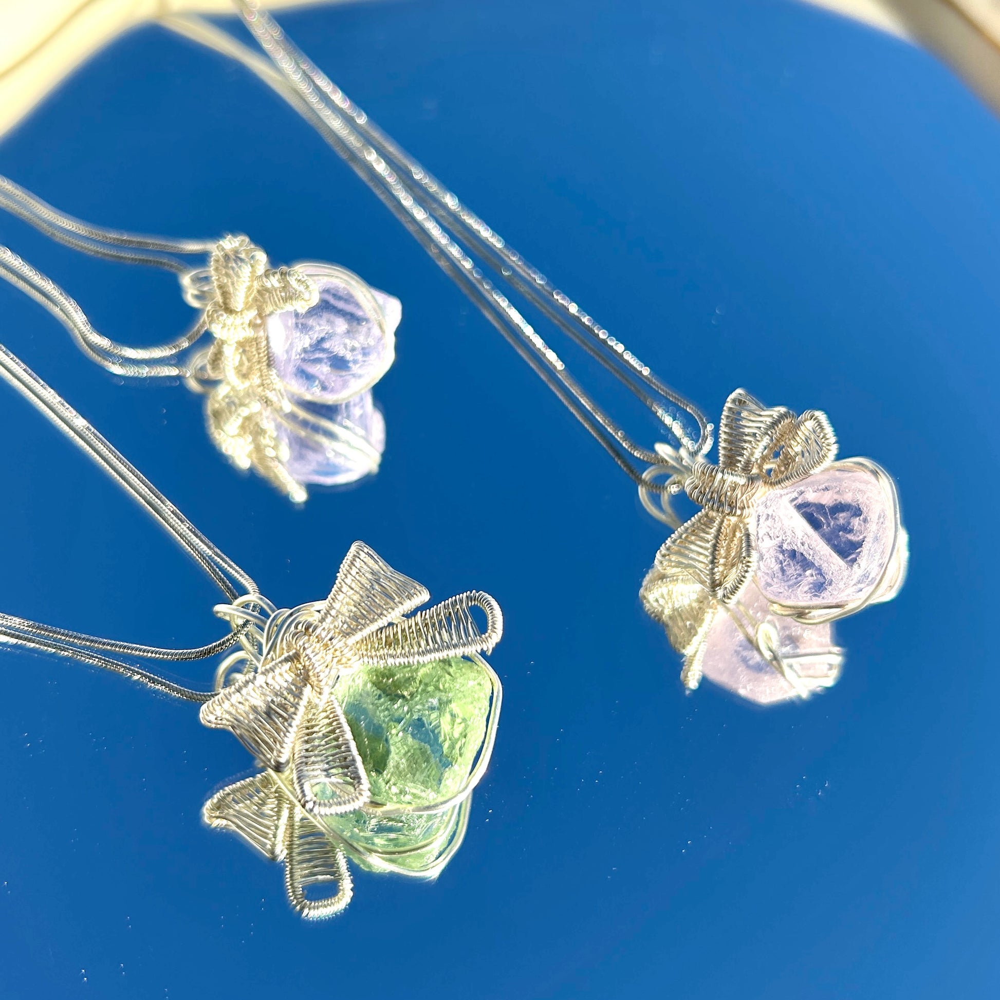 Collar artesanal colgante lazos cristal multicolor brillante joyería