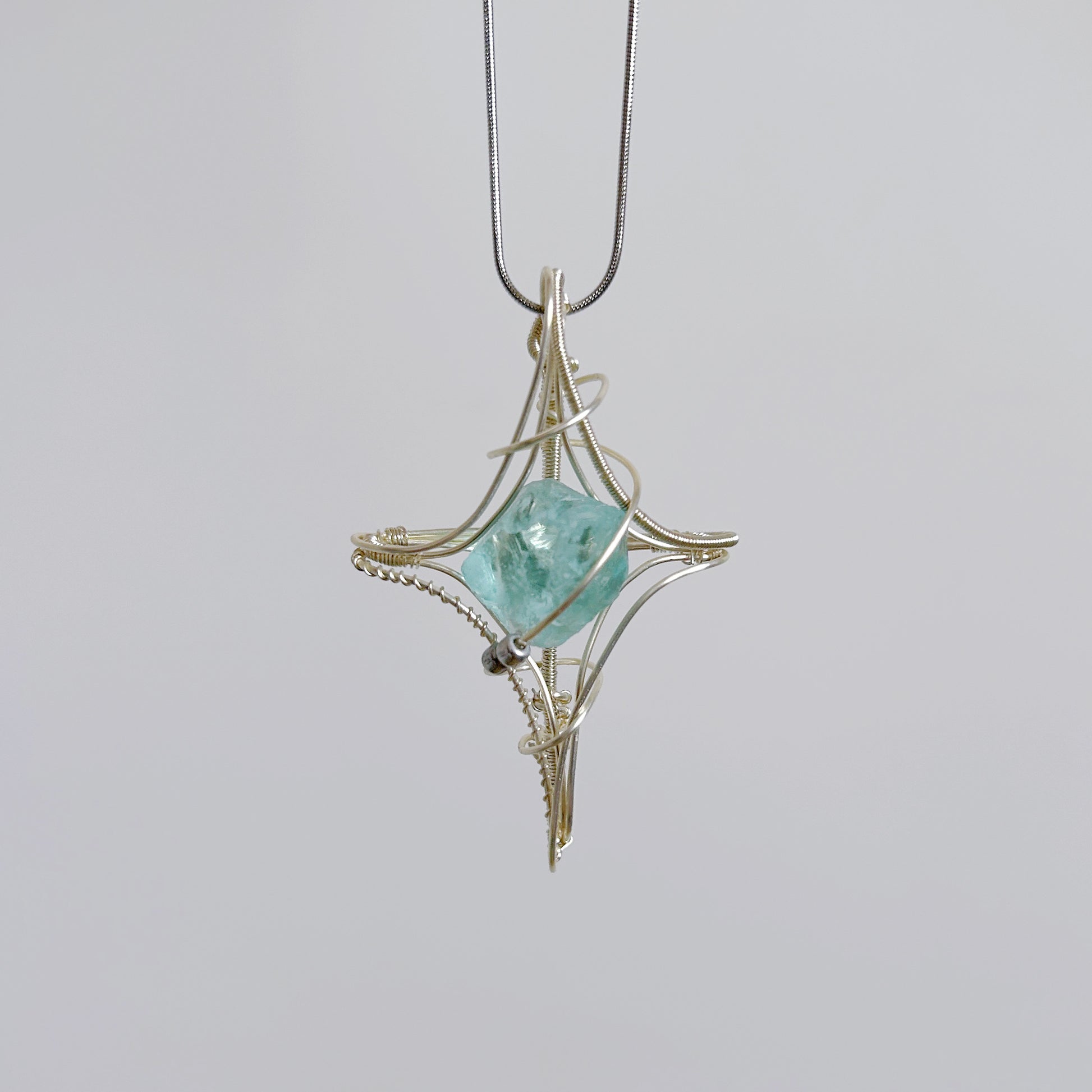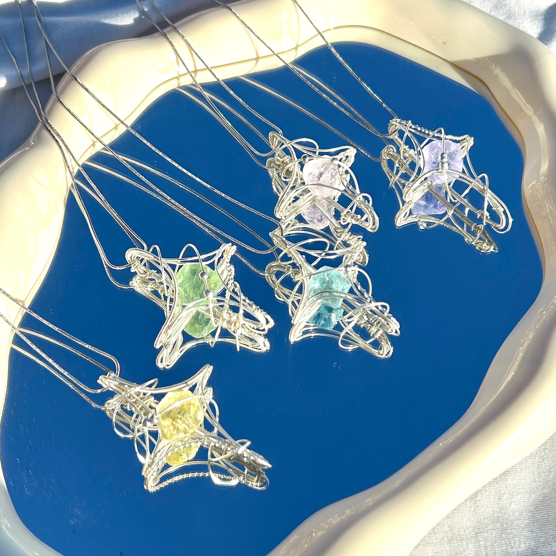 Collar artesanal cristal estrella de cuatro puntas multicolor brillante joyería elegante mujer